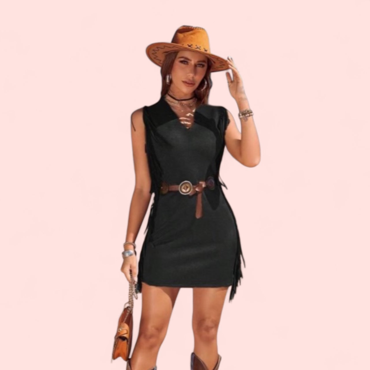 Unleash your inner wild child with Fringed Up! This playful dress is perfect for those who crave some western fashion with a twist. The sued fabric and fringe detailing add a touch of fun and a whole lot of sass to any outfit. So go ahead, get fringed up and make a statement !